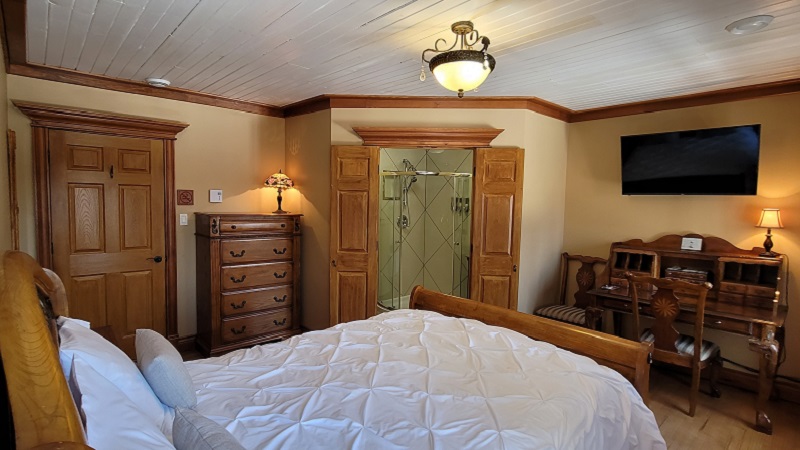Situées à l’étage sur le flanc arrière, les chambres du Dr. Max Comtois et de Wenceslas Plante bénéficient d’une vue sur le boisé. La chambre du Dr Max Comtois possède un solarium privé 3 saisons et la chambre de Wenceslas Plante offre un grand secrétaire de travail.